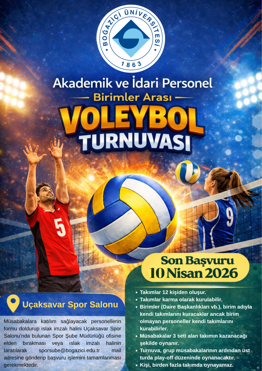 Üniversitemiz akademik ve idari personeline yönelik olarak birimler arası voleybol turnuvası düzenlenecektir.