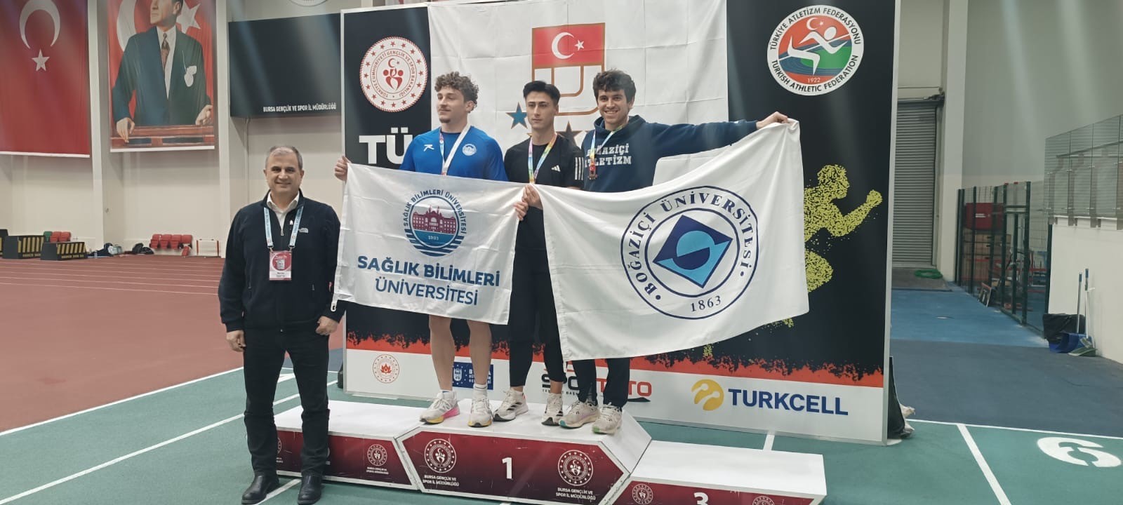 Boğaziçi Üniversitesi Atletizm Takımından Türkiye Şampiyonasında Büyük Başarı! 25-26 Şubat 2025'te Bursa'da düzenlenen Türkiye Üniversiteler Arası Atletizm Şampiyonası'nda, Boğaziçi Üniversitesi Atletizm Takımı 5 farklı branşta 5 madalya kazanarak ve sayısız okul rekoru kırarak büyük bir başarı elde etti. Toplamda 25 üniversitenin katıldığı şampiyonada, kadın takımı 4'üncü, erkek takımı ise 5'inci olarak başarılı bir yarış sezonunu tamamladı.