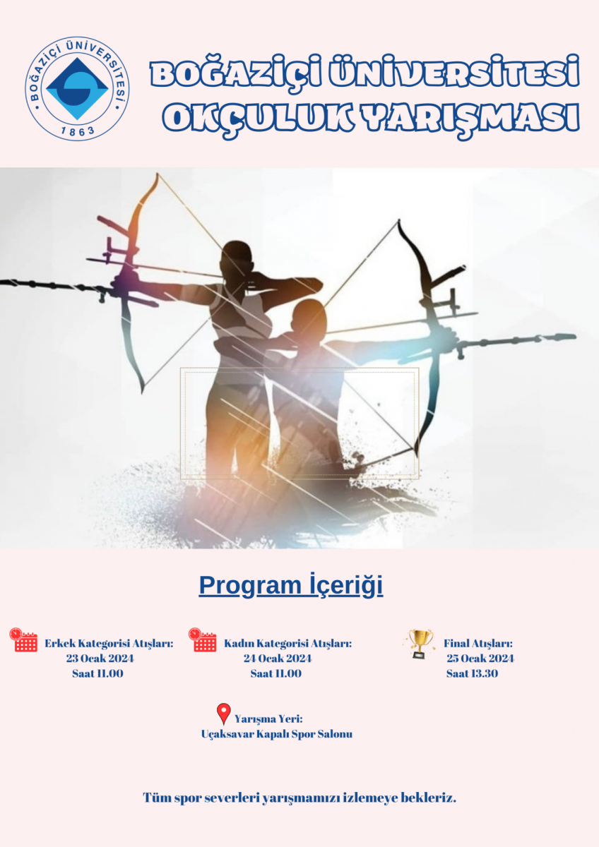 Okçuluk Atölyesi kapsamında akademik ve idari personellerimize yönelik düzenlemiş olduğumuz okçuluk eğitimlerimiz tamamlanmıştır. Bu kapsamda eğitimlerimize katılan kursiyerlerimizin katılacağı 23-25 Ocak 2024 tarihlerinde Uçaksavar Spor Salonunda Okçuluk Yarışması yapılacaktır. Yarışma Afişi ve Talimatı ekte sunulmuştur. Tüm akademik ve idari personelimizi yarışmayı izlemeye bekleriz.