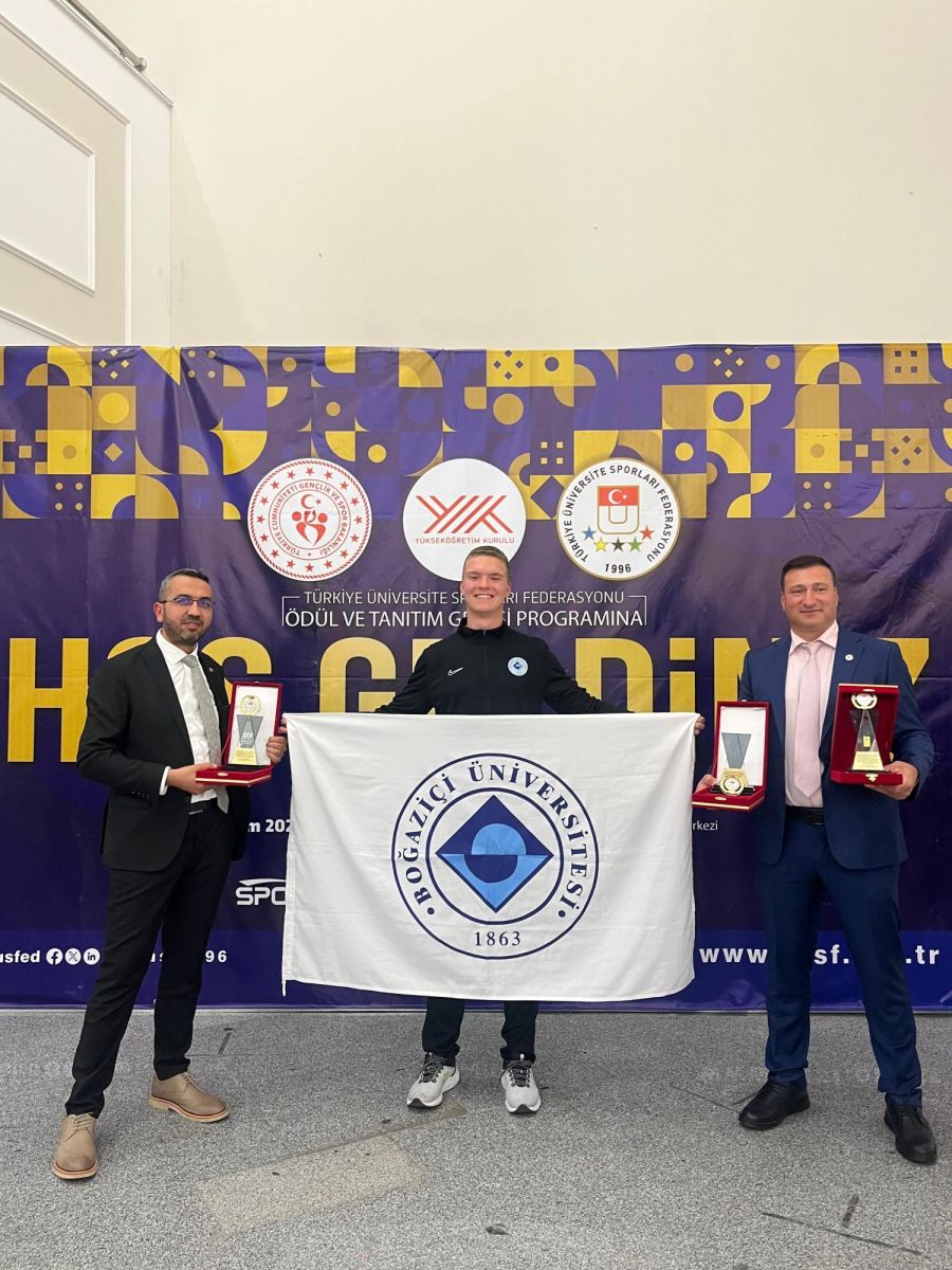 Üniversitemizin kazanmış olduğu ödüller Sağlık, Kültür ve Spor Daire Başkanı Ramazan Kesik, Spor Şube Müdürü Mesut Okur ve öğrencimiz Kağan Saz’a takdim edilmiştir.