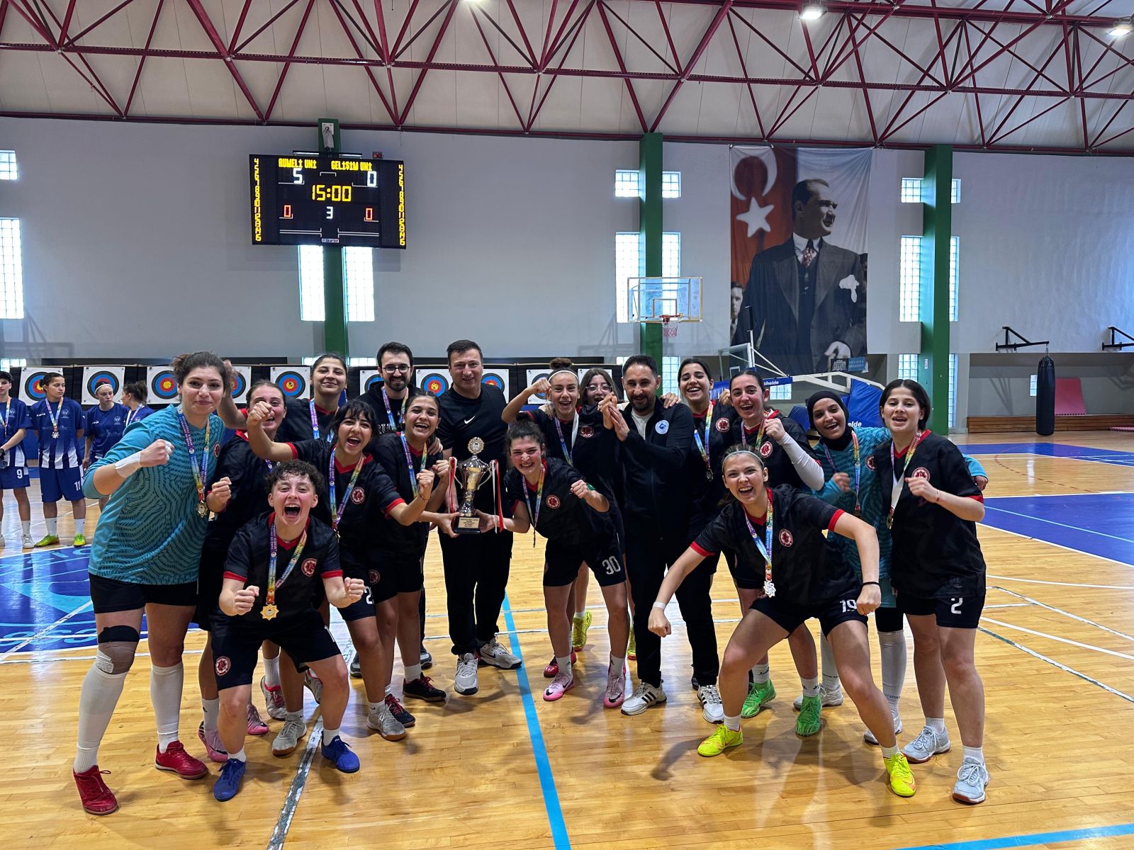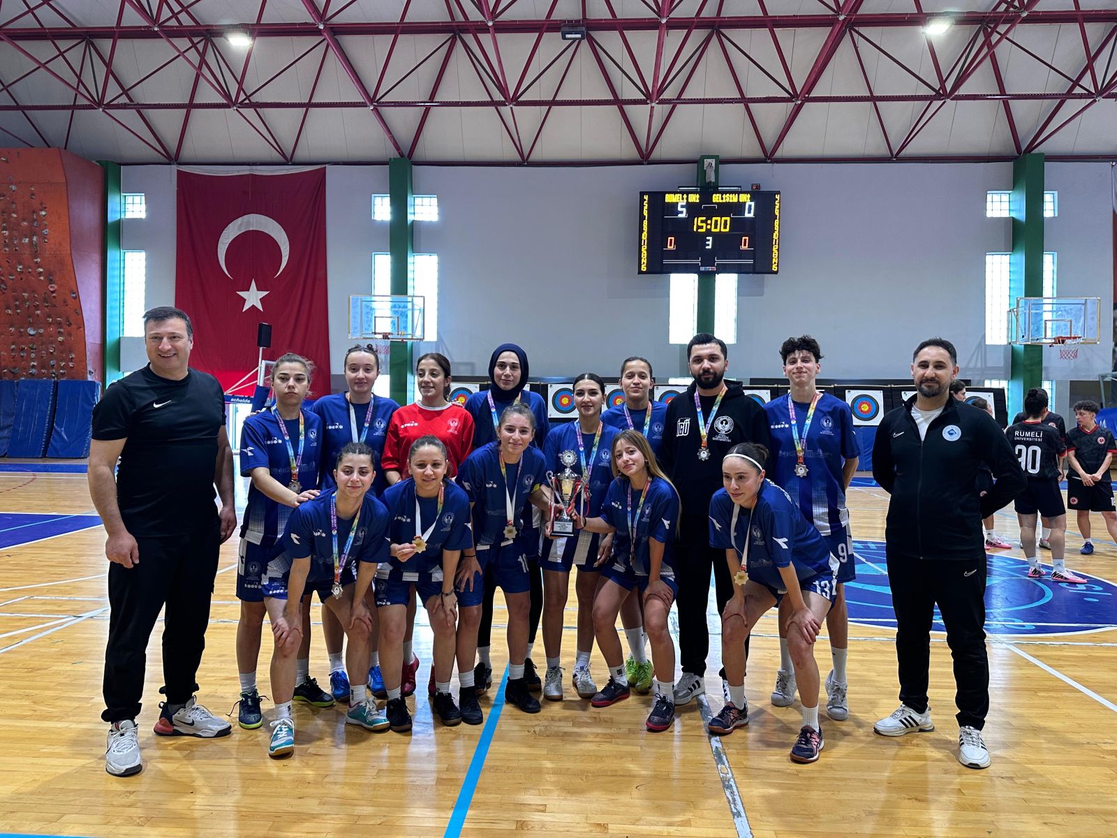 Türkiye Üniversite Sporları Federasyonu İstanbul İl Koordinasyon Kurulu tarafından organize edilen, üniversitemizin ev sahipliğinde gerçekleştirilen Kadın Futsal Lig'i sonuçlanmıştır. Final maçları sonunda İstanbul Üniversitesi Cerrahpaşa 3.,Gelişim Üniversitesi 2. ve Rumeli Üniversitesi 1. olmuştur. Dereceye giren takımlara Spor Şube Müdürümüz Mesut Okur tarafından ödülleri takdim edildi. Başta dereceye giren takımlar olmak üzere Lig'e katılan tüm takımları tebrik eder başarılarının devamını dileriz.