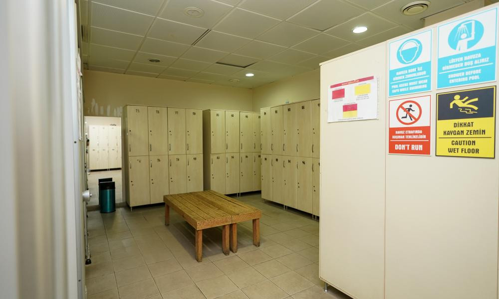 - 575 m² kapalı alanlı A Blok, zemin katında Bay-Bayan soyunma odaları, duş ve wc'ler ile üst katta idari ofisler ve 1 adet çok amaçlı salon mevcuttur.